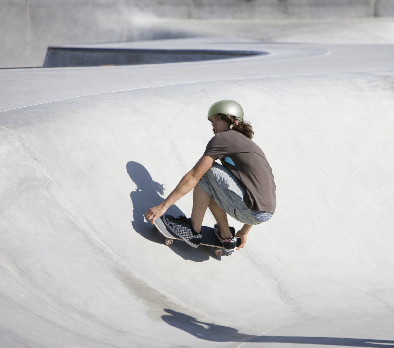 für Fortgeschrittene mit Skateboard und Schutzausrüstung